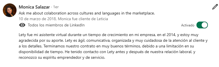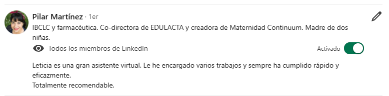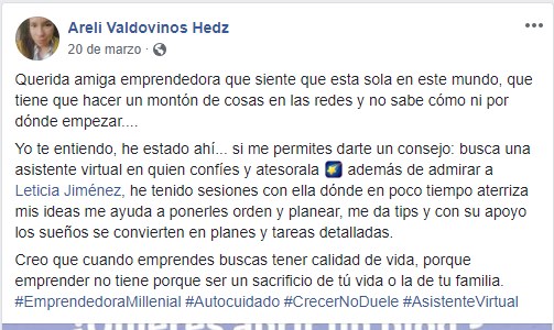 Soy Leticia Jiménez, apoyo a emprendedoras en la optimización de sus negocios. Me encargo de tareas como actualización y mantenimiento de sitios web en WordPress, gestión de redes sociales y soporte administrativo. Mientras yo me ocupo de las labores que consumen tiempo, tú puedes concentrarte en lo esencial de tu emprendimiento.
