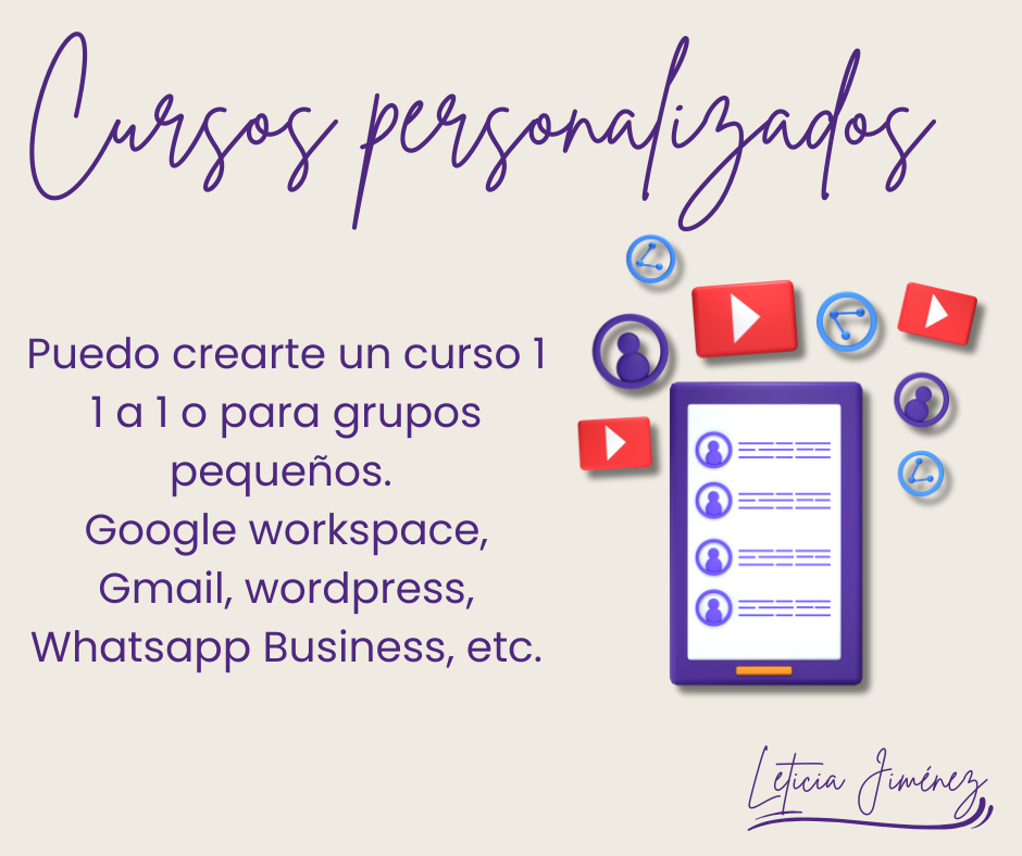 Cursos personalizados o para grupos pequeños. Google workspace, Gmail, wordpress, Whatsapp Business etc